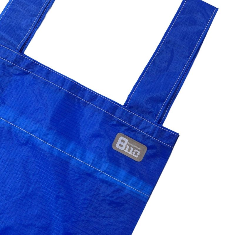 本来の使用用途の役目を終えたパラグライダーの生地を再利用して作ったエコバッグです。
