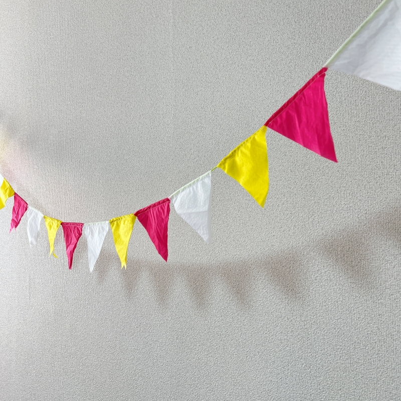 フラッグガーランド/白黄ピンク/ハンドメイド/パラグライダーリメイク