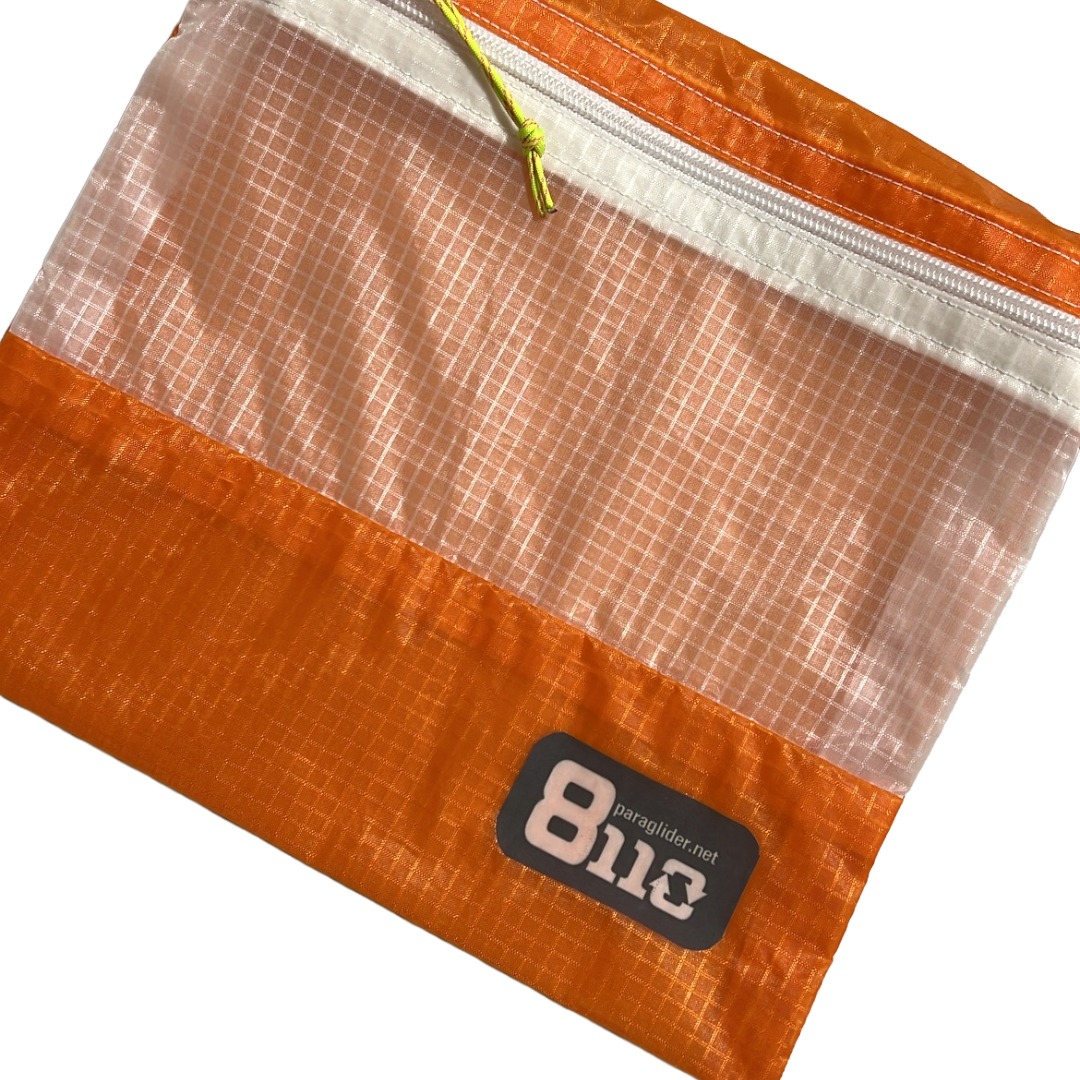 本来の使用用途の役目を終えたパラグライダーのキャノピー(生地)・ライン(紐)を再利用して作ったポーチです。