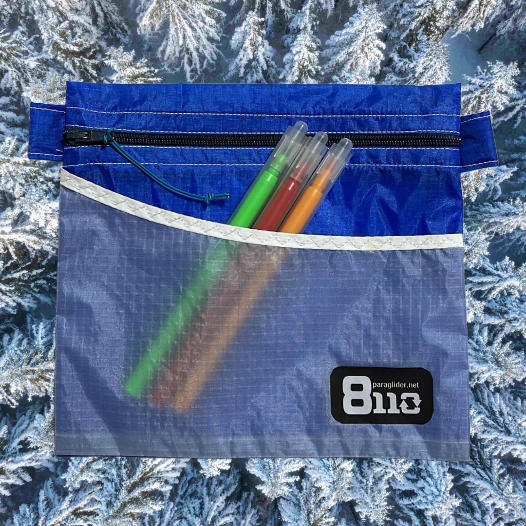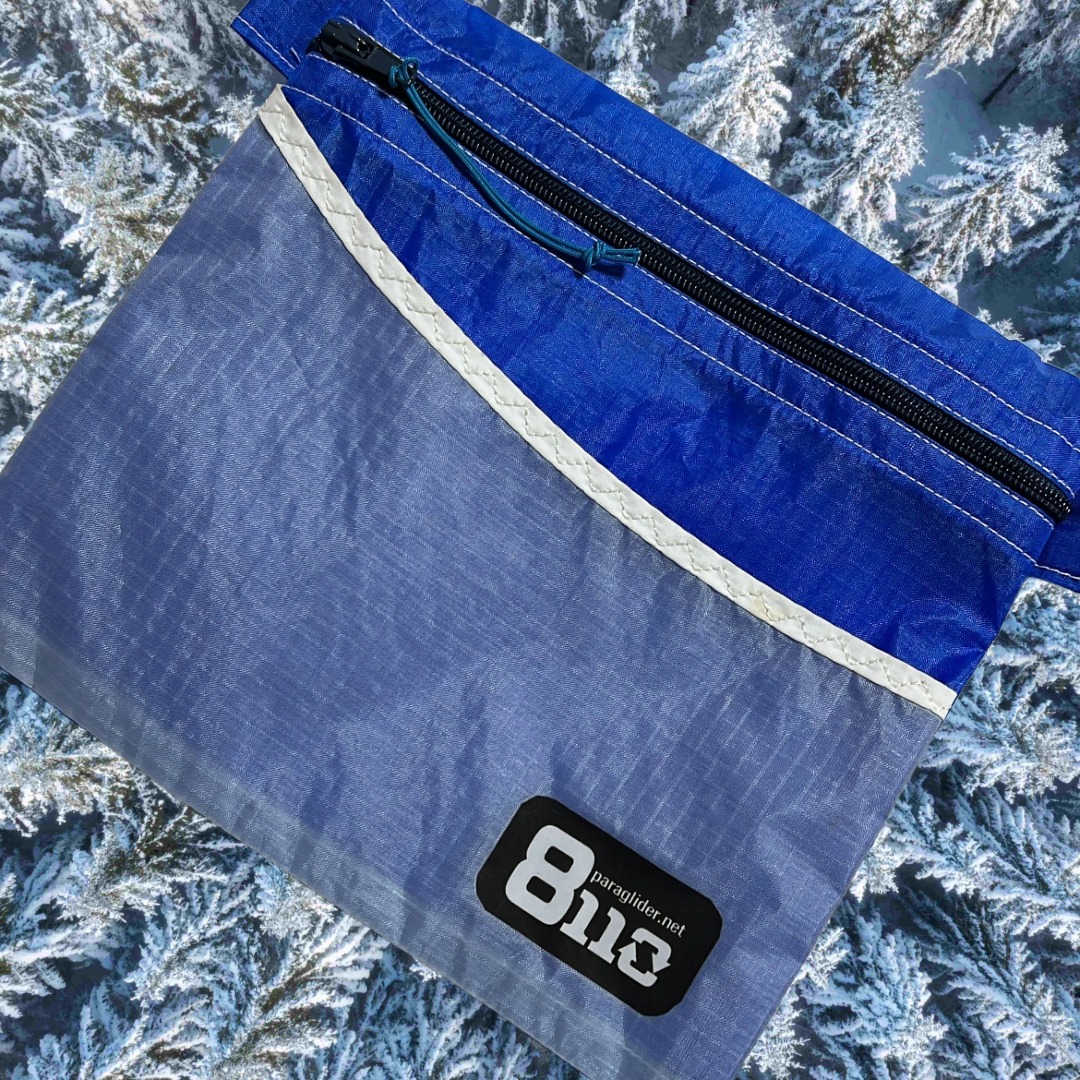 本来の使用用途の役目を終えたパラグライダーのキャノピー(生地)・ライン(紐)を再利用して作ったポーチです。