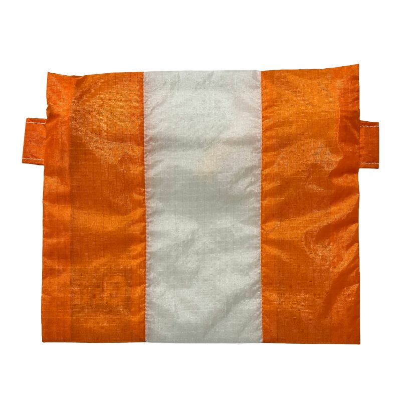本来の使用用途の役目を終えたパラグライダーのキャノピー(生地)・ライン(紐)を再利用して作ったポーチです。